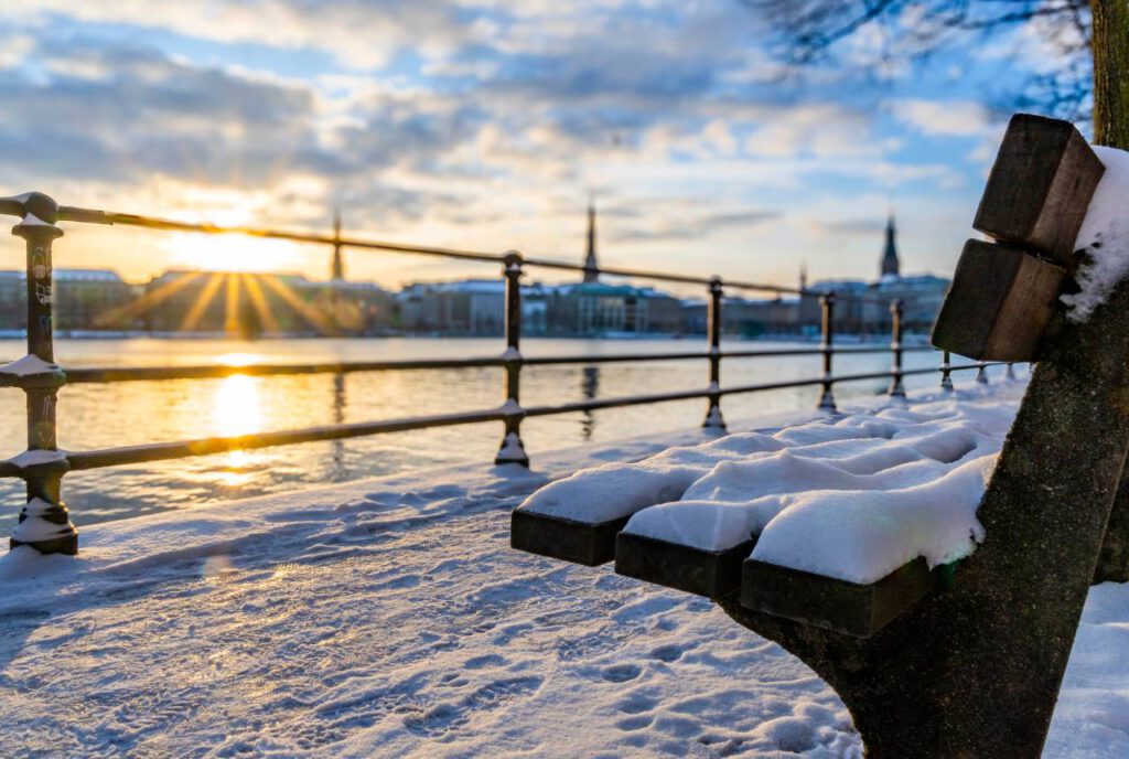 Ein Rundgang um die Alster ist zu jeder Jahreszeit ein Erlebnis, doch im Winter zeigt sich die Strecke von ihrer besonders malerischen Seite. Der Rundweg um die Außenalster bietet weite Blicke auf das ruhige Wasser, das bei Frost oft mit einer zarten Eisschicht bedeckt ist. Besonders stimmungsvoll ist es, wenn sich die Lichter der Stadt in der winterlichen Dämmerung auf der Oberfläche spiegeln.