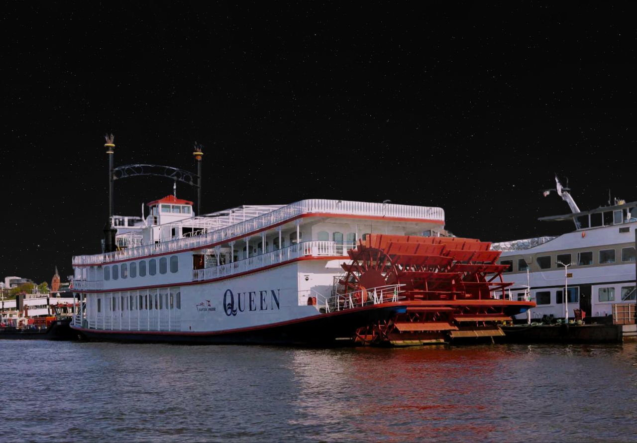 Erleben Sie den Hamburger Hafengeburtstag aus nächster Nähe an Bord unserer authentischen Schaufelradschiffes MS Queen und bewundern Sie die Magische Lichtillumination by AIDA über der Elbe.