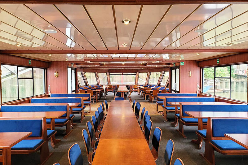 Auch für Veranstaltungen aller Art ist die MS Solar bestens geeignet. Im Innenbereich finden bis zu 186 Personen sitzend Platz. Für Events wie Firmenfeiern, Präsentationen, Partys oder Gruppenreisen kann der Innenraum flexibel gestaltet werden: Tische und Stühle lassen sich umstellen oder entfernen, um beispielsweise Platz für ein Buffet, eine Tanzfläche, DJ-Equipment oder Präsentationstechnik zu schaffen.